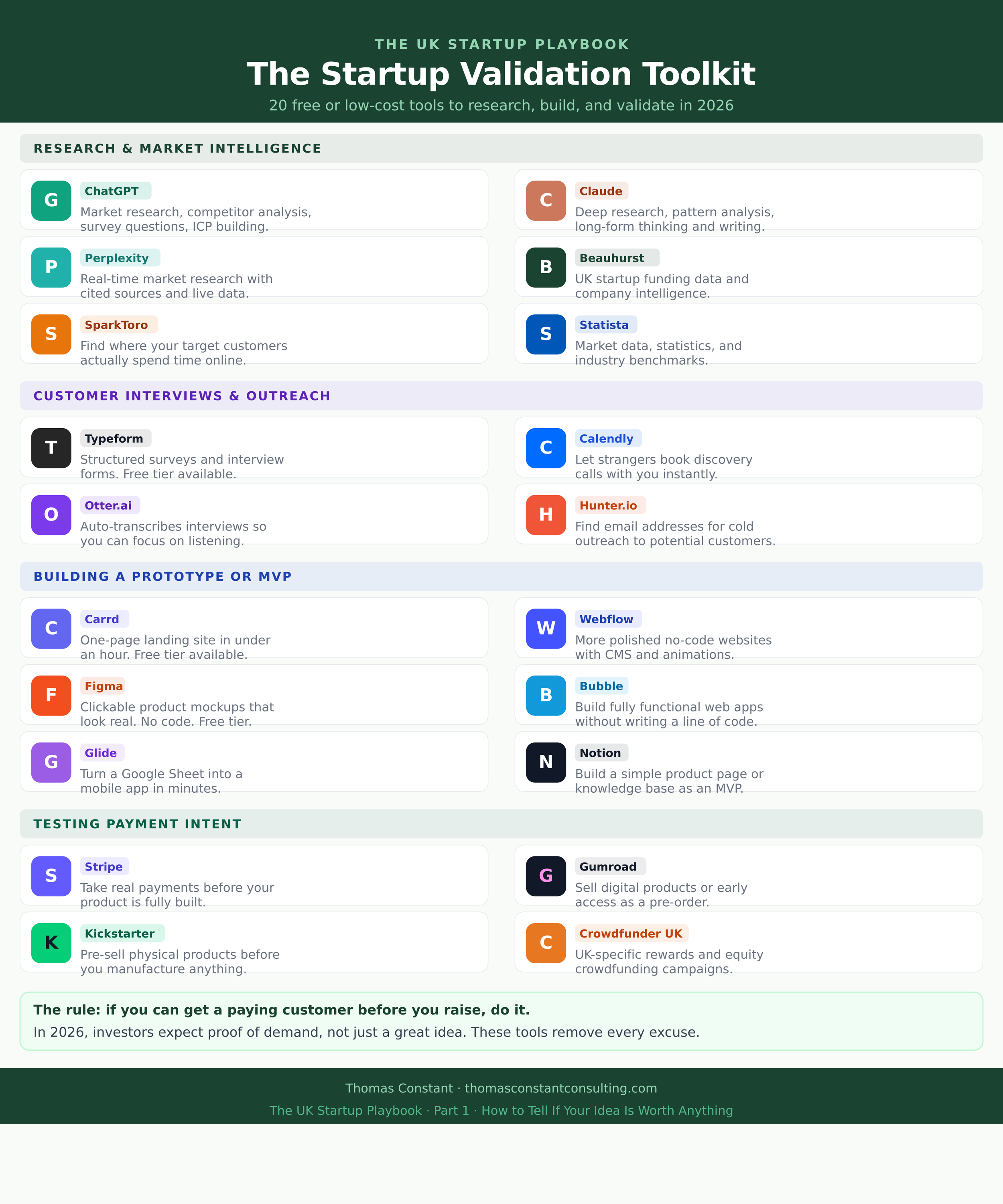 And in 2026, there is genuinely no excuse not to do this properly. The tools available to you today would have seemed like science fiction to founders five years ago. You have AI, no-code builders, prototype tools, and global communities at your fingertips. The bar has risen. The expectations have risen with it. That's what this guide is about.